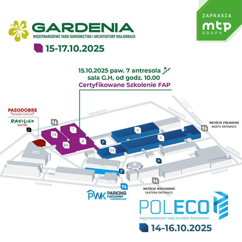 Podczas Międzynarodowych Targów Ogrodnictwa i Architektury Krajobrazu Gardenia 2025 w Poznaniu odbędzie się certyfikowane szkolenie Federacji Arborystów Polskich „Współczesne technologie i sprzęt dla drzew”. Wydarzenie, zaplanowane na 15 października 2025 r., w godz. 10:00–17:00, obejmuje 7 wykładów prowadzonych przez ekspertów z zakresu arborystyki i dendrologii. Tematyka szkolenia obejmuje nowoczesne technologie ochrony i stabilizacji korzeni, diagnostykę drzew metodą tomografii i testów obciążeniowych, sprzęt Air Spade, metody przesadzania starszych drzew oraz innowacyjne rozwiązania dla arborystów. Uczestnicy mogą otrzymać certyfikat Federacji Arborystów Polskich.