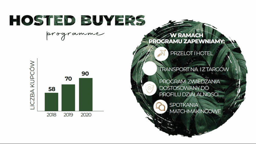 W ramach programu HOSTED BUYERS organizatorzy oferują zwrot kosztów przelotu, zakwaterowania, wyżywienia. Dodatkowo goście programu otrzymują zaproszenie do targowej strefy VIP. Wystawcy mają realny wpływ na osoby, które odwiedzą Targi w ramach programu HOSTED BUYERS. Proponują osoby, z którymi chcieliby nawiązać współpracę , a Targi Poznańskie zajmują się organizacją ich spotkania.