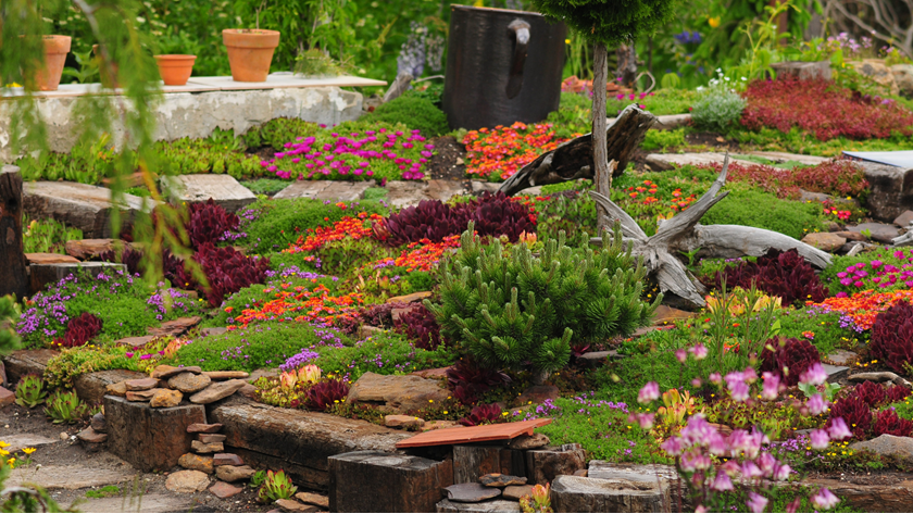 W to wszystko wkomponowane są przeróżne nasadzenia, ale szczególnego uroku dodają prawdziwe kolekcje roślin okrywowych czy chociażby tak lubianych rojników, które jak powszechnie wiadomo, są bylinami absolutnie niewymagającymi, za to tak sympatycznymi, że zawsze wywołują uśmiech na ustach. Szczególnie w tym ogrodzie, w którym wyglądają jak w bajkowej krainie.