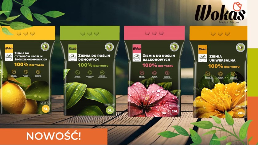 Wokas Naturalnie to gama 4 dedykowanych produktów: Ziemia do cytrusów i roślin śródziemnomorskich; Ziemia do roślin balkonowych; Ziemia do roślin domowych; Ziemia uniwersalna. Są to produkty 100% bez torfu.