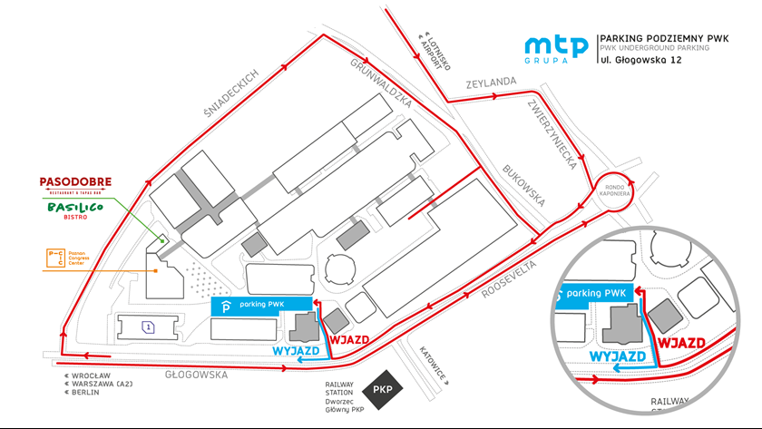 Zwiedzających zapraszamy na parking podziemny - Parking PWK.